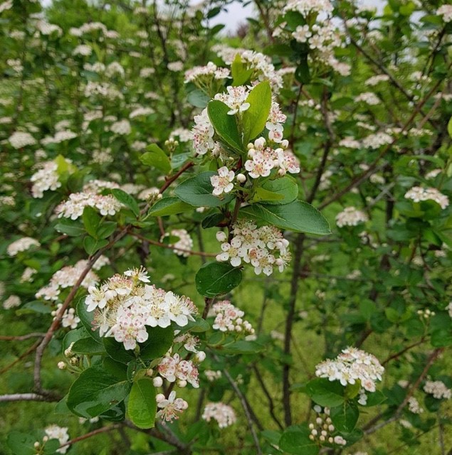 아로니아는 4-5월 쯤 하얀꽃이 피고 8월쯤 수확하는 나무 입니다~